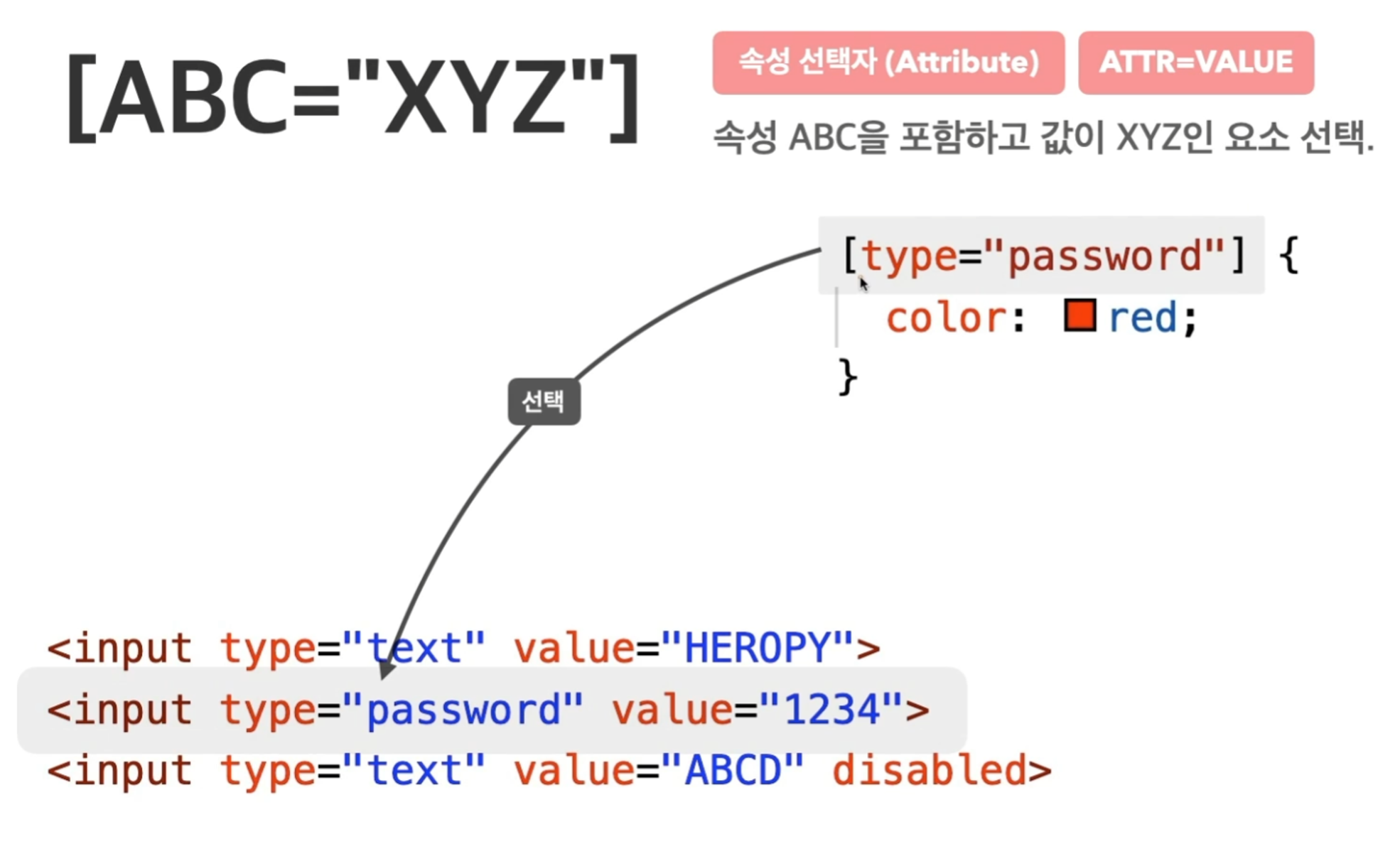 - 속성 abc를 포함하고 값이 xyz인 요소를 선택한다.